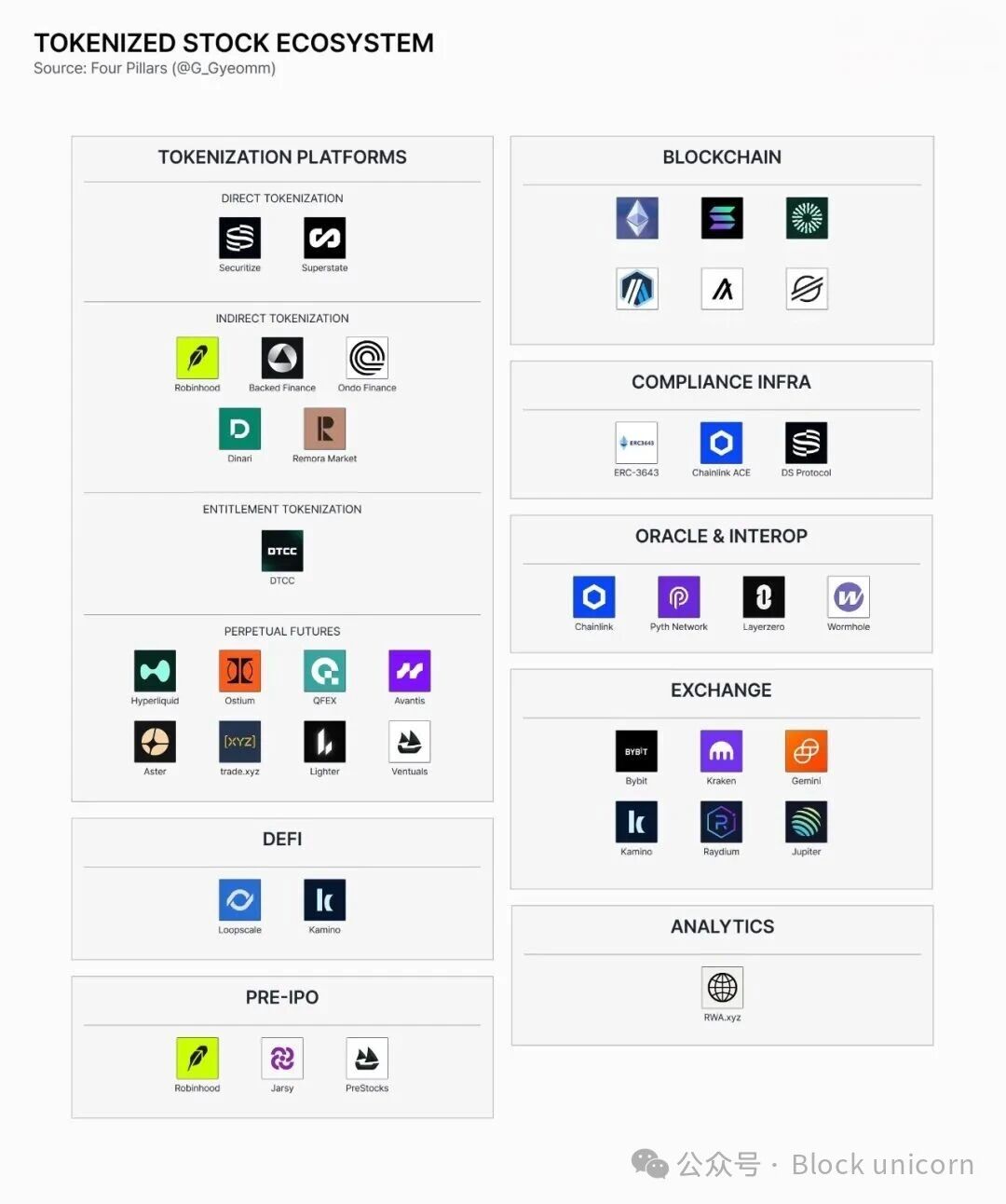 以下的章节将探讨构成代币化股票市场的关键领域,重点关注区块链、代币化平台、合规基础设施、预言机和去中心化金融(DeFi)。我们将分别概述每个领域的主要参与者及其现状。