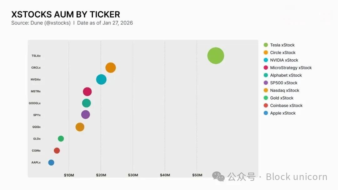 这种结构使 Backed Finance 能够更灵活地向二级市场供应高需求股票。实际上,xStocks 的发行集中在 TSLAx、CRCLx 和 NVDAx 等热门股票上。