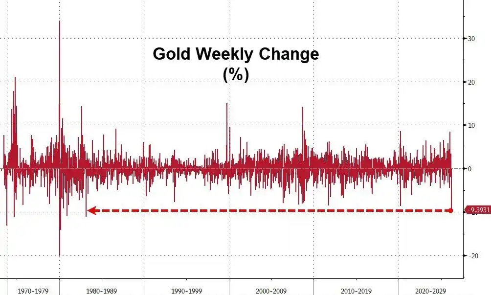 黄金本周遭遇 43 年来最惨烈的单周跌幅,历史的回声令市场不寒而栗。