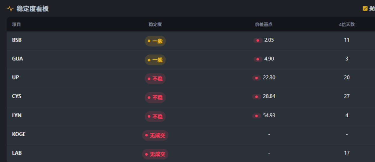 交易量大能快速成交;价格稳定可降低磨损;带 4 倍标志能以少量交易量拿到高二档积分。大家可以通过稳定度、价格基点、四倍天数这几个指标筛选,新手必备工具:https://alpha123.uk/zh/stability/ ,价差基点为0 时标的最稳定。
