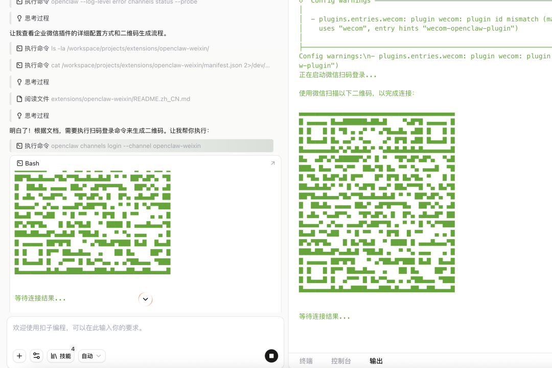 跑完这行代码后,电脑屏幕上会直接弹出一个二维码。