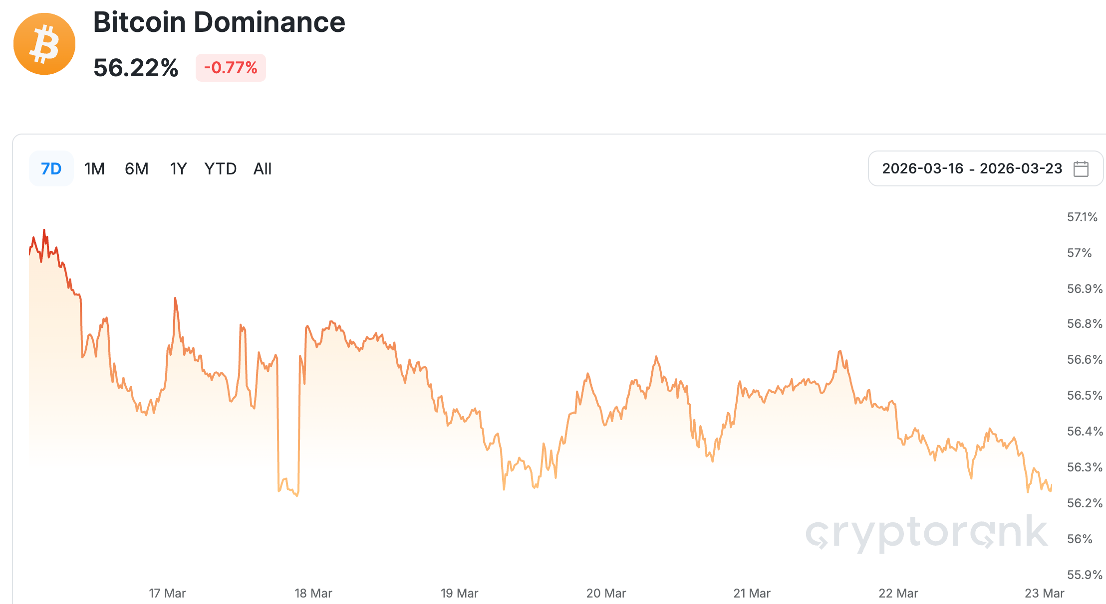 数据来源:Bitcoin dominance from cryptorank, https://cryptorank.io/charts/btc-dominance
