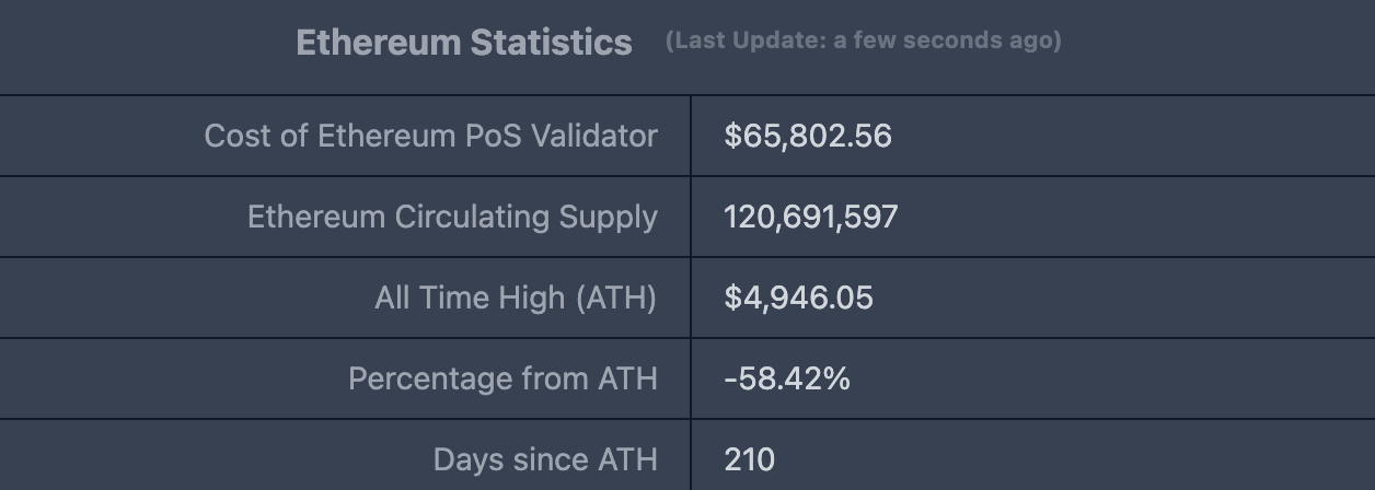 ETHUSD :现价$2,056.33,历史最高价$4,946.05,距最高价跌幅约58.42%