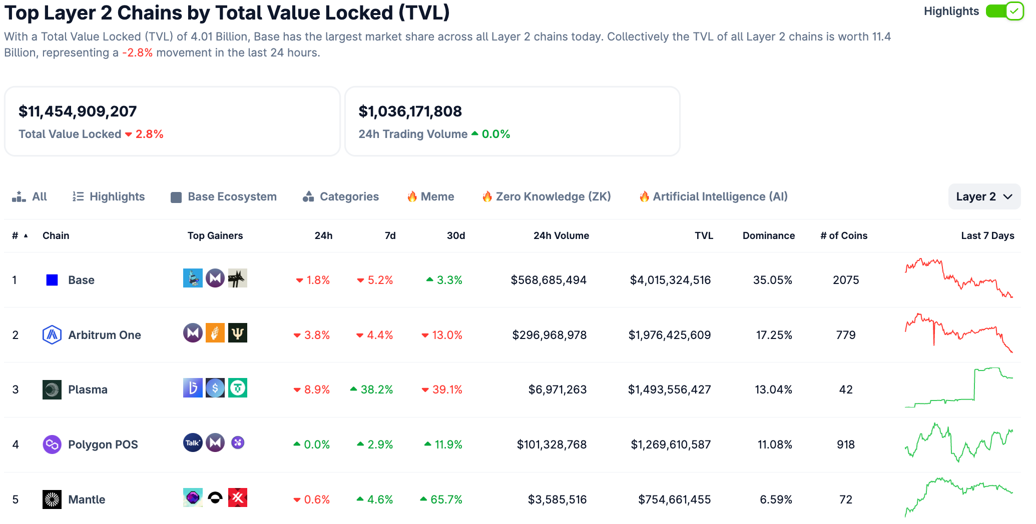 数据来源:CoinGecko, https://www.coingecko.com/en/chains/layer-2