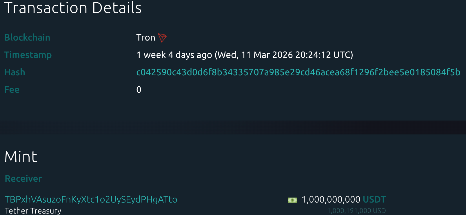 据Whale Alert数据显示,本周USDC Treasury总计增发39.31亿枚USDC,Tether Treasury本周总计增发10亿枚USDT。本周稳定币增发总量为49.31亿枚,较上周稳定币增发总量(53.02亿枚)下降6.99%。