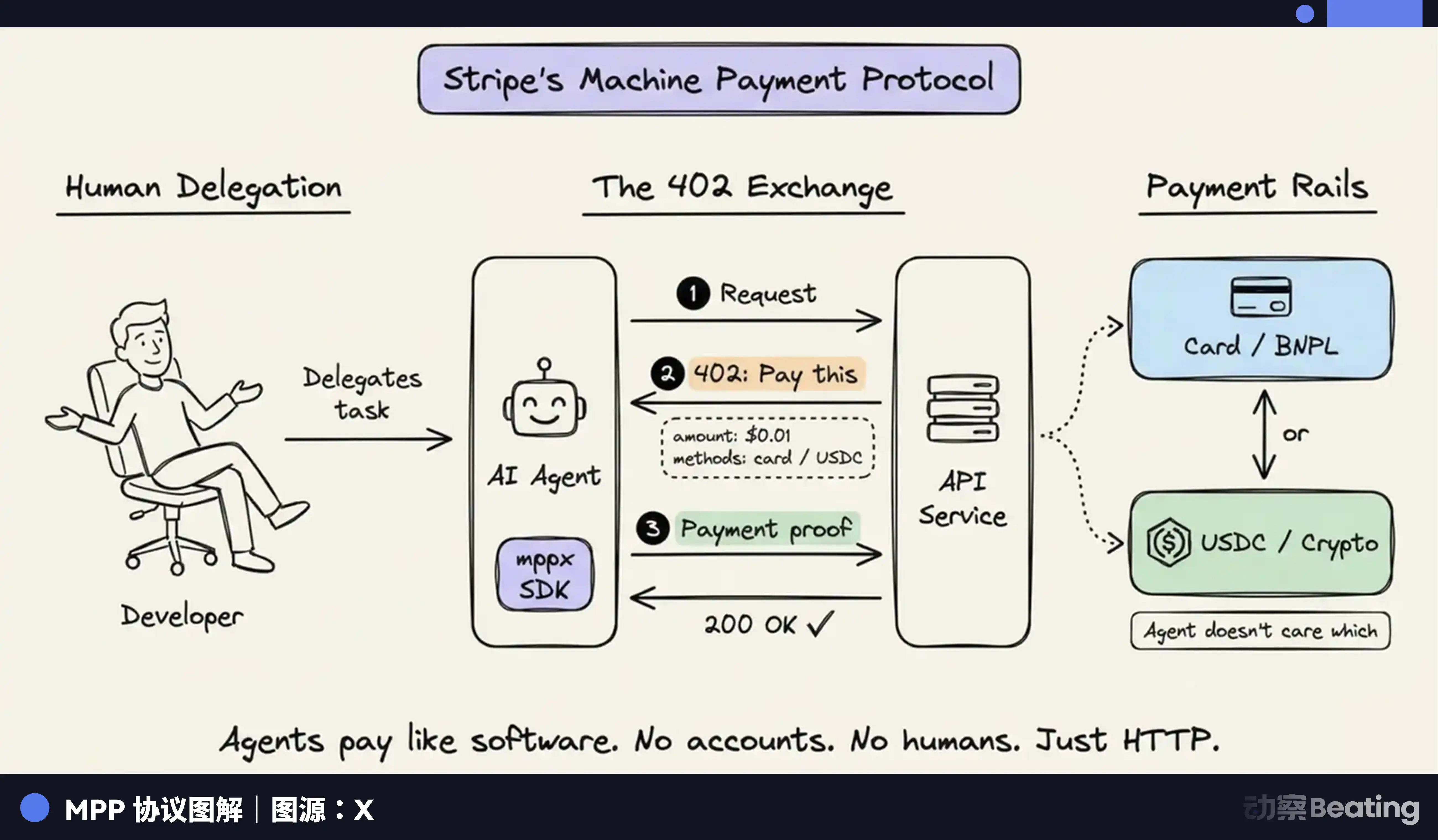 3 月 18 号,Stripe 发布了 Machine Payments Protocol。说白了:AI agent 可以自己花钱了。