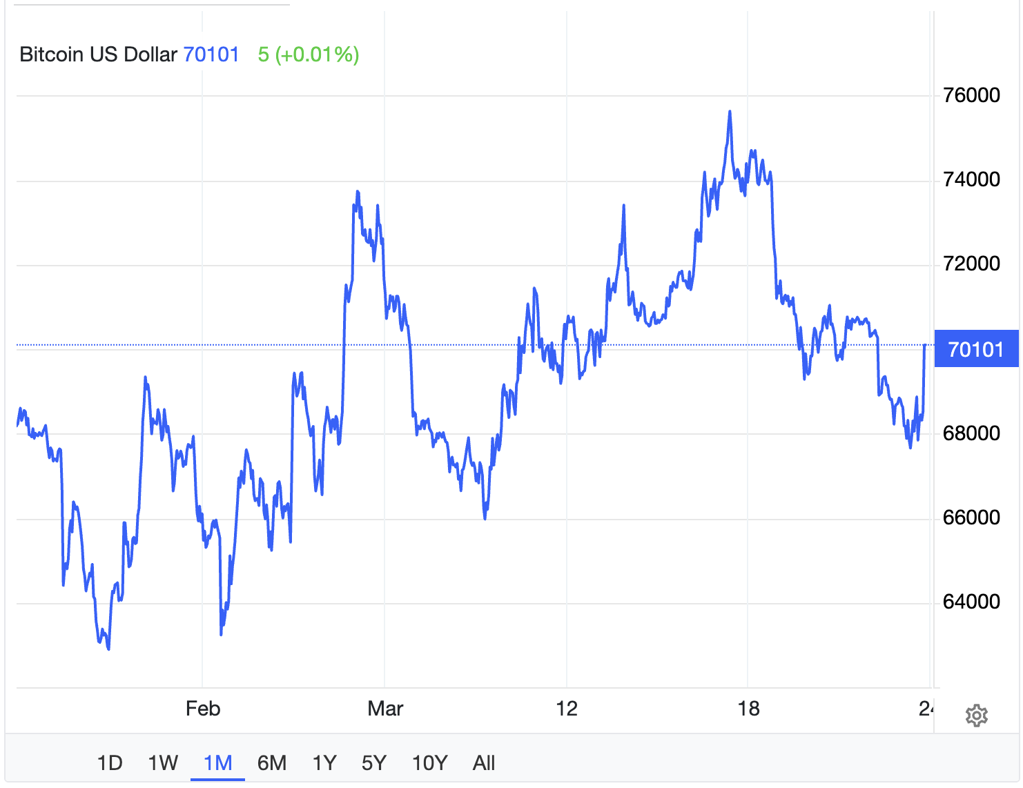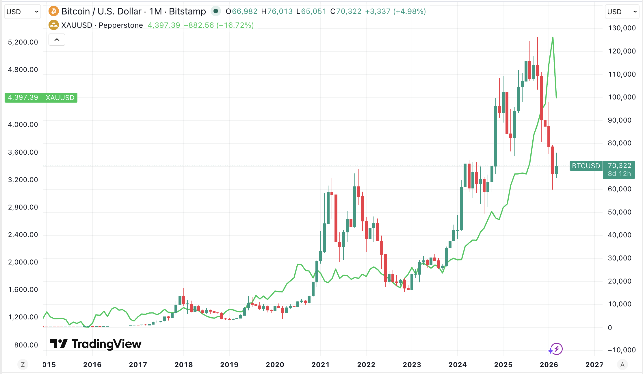 一觉醒来,BTC 又拉回 70k。早上开车路上,广播里播放着黄金承压美联储 3 月议息会议降息预期落空的消息,抹去今年以来全部涨幅。