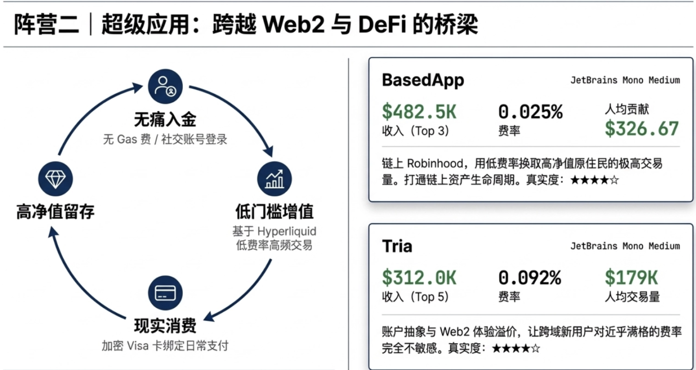 • 超级 App 用户(Based、Tria):用户数中等,人均贡献高