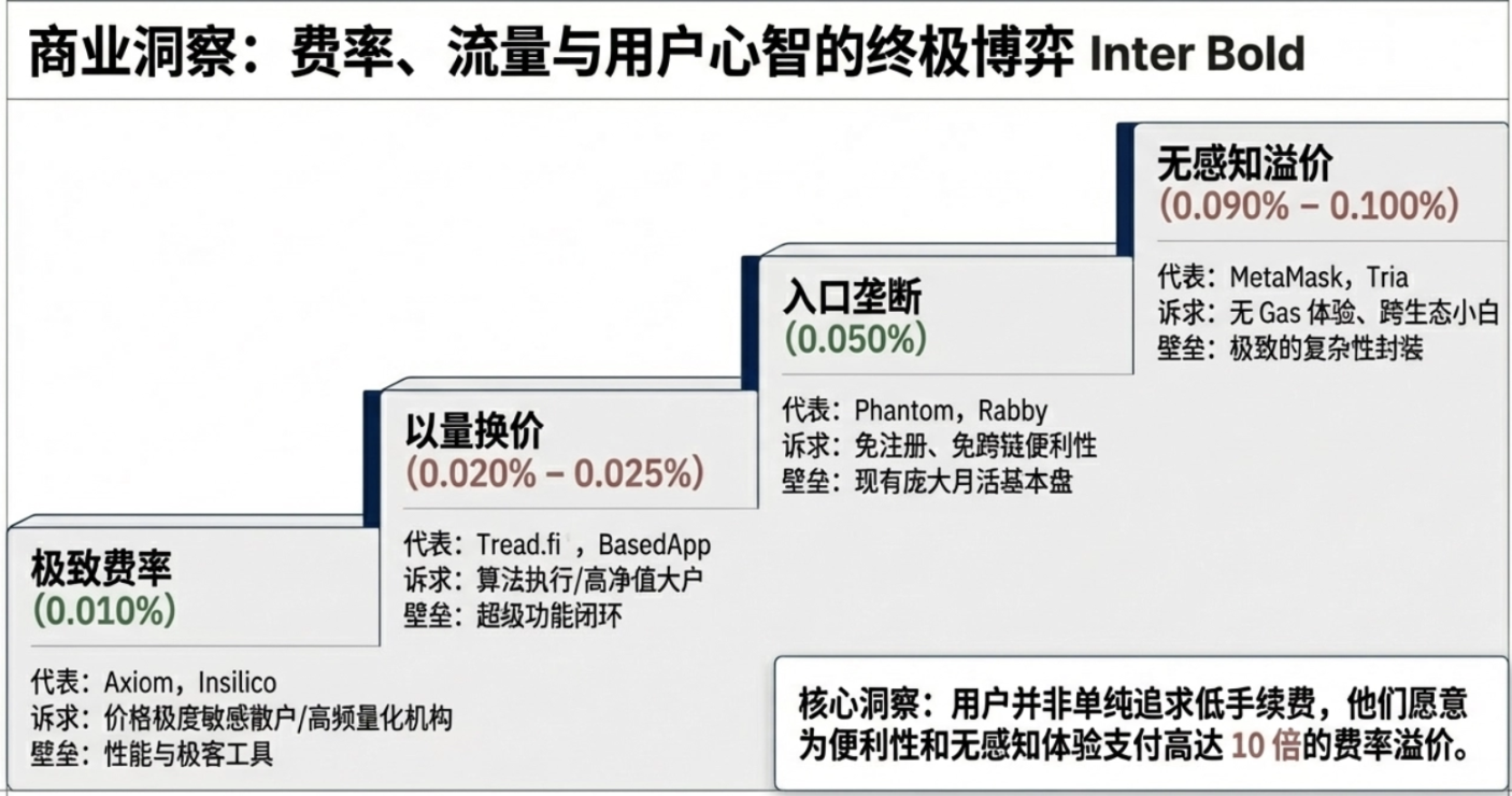 • 散户用户(Phantom、Axiom、Rabby):用户数多,人均贡献低