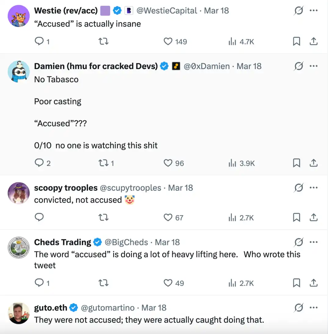 在 Netflix 官宣的推文评论区,很多人指出推文中使用的「acussed」非常不恰当,称二人并非被指控,而是已经被定罪。