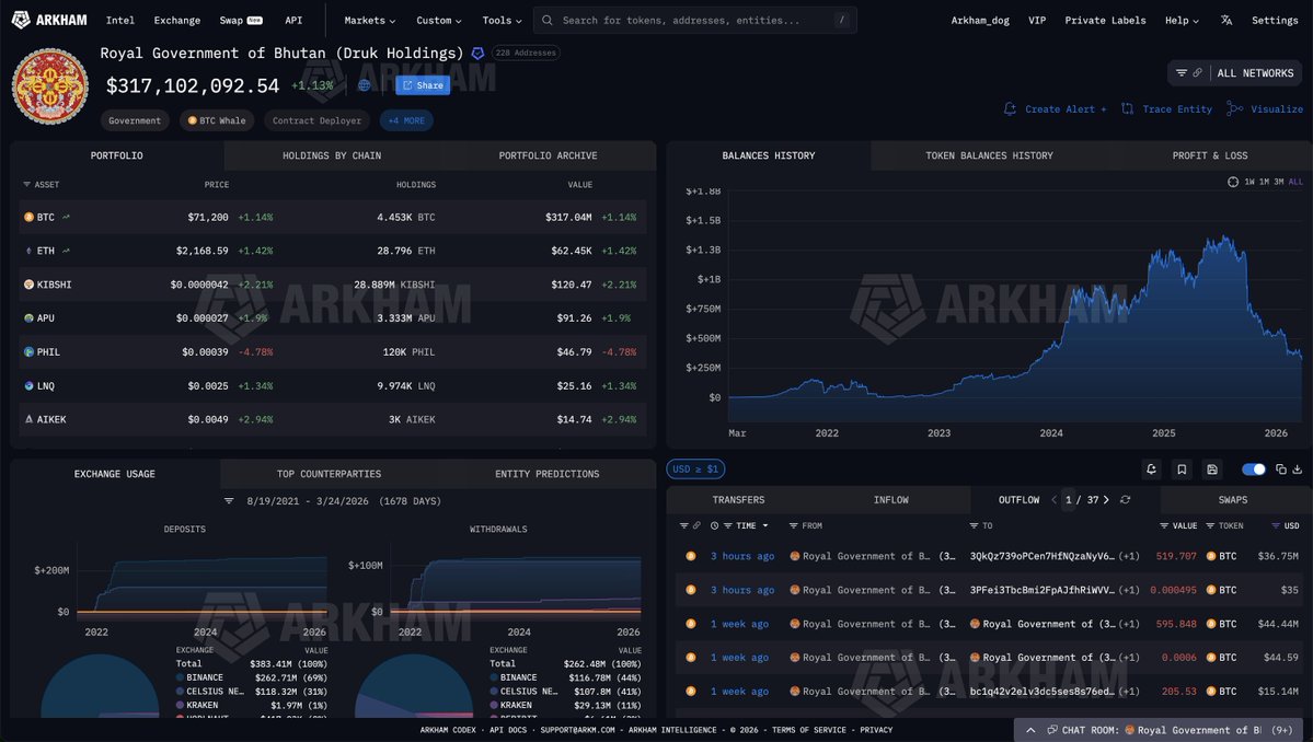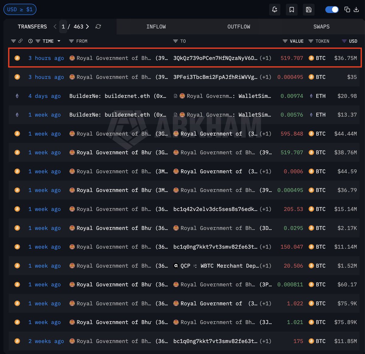 不丹刚刚将3775万美元的比特币从其主要持有地址中转出。接收这一部分比特币的地址之一与交易公司QCP Capital有频繁的互动。