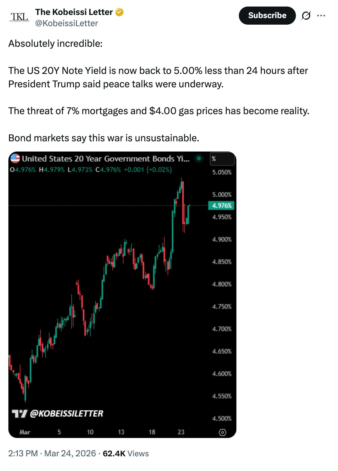 在美国与伊朗的战争期间,比特币一直是表现最为强劲的资产之一。然而由于债券市场呈现「失控」态势,比特币的上行动能正显露出衰竭迹象。