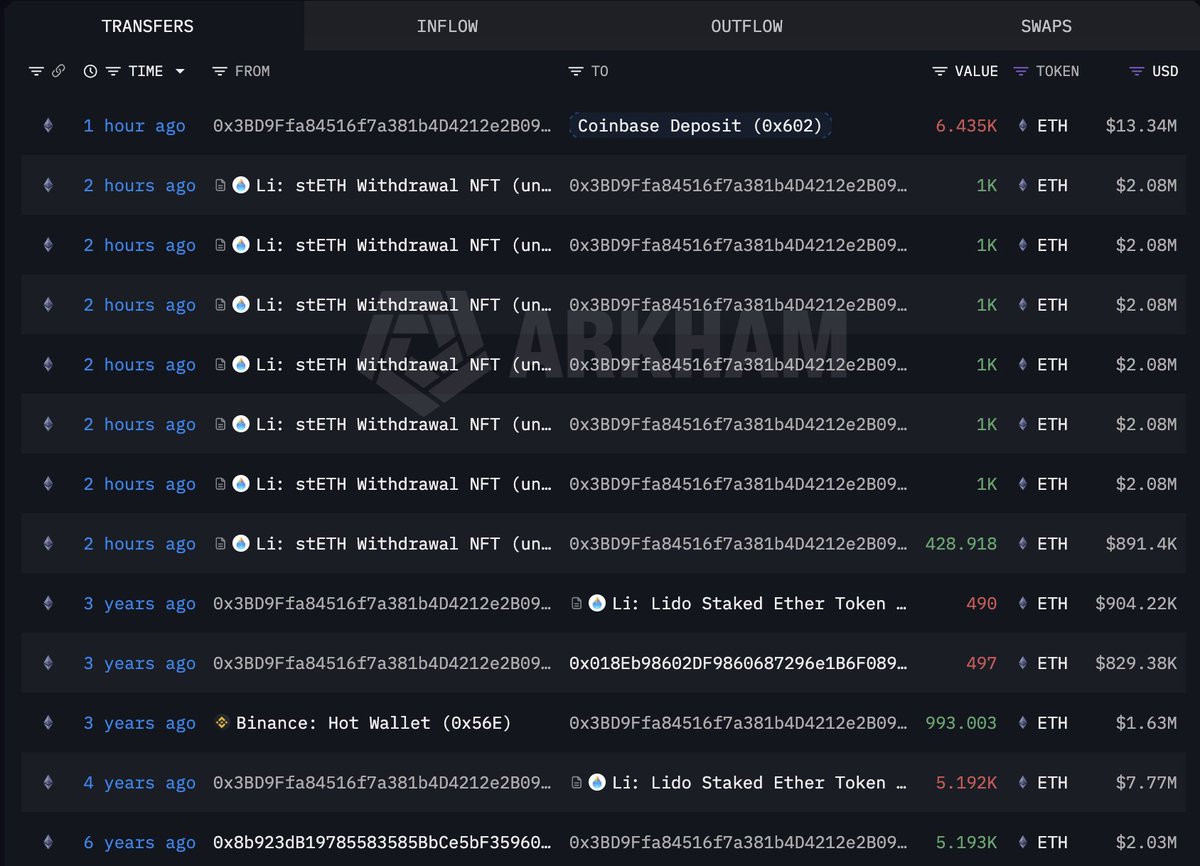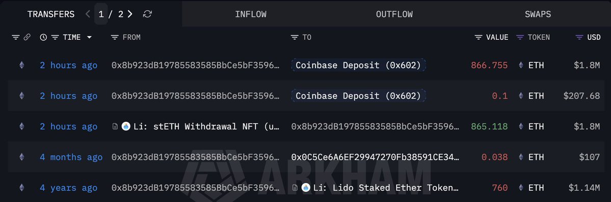 一位以太坊OG在4年后解除质押他的$ETH,并在过去2小时内以$2,073的价格出售了7,302 $ETH($15.14M)。