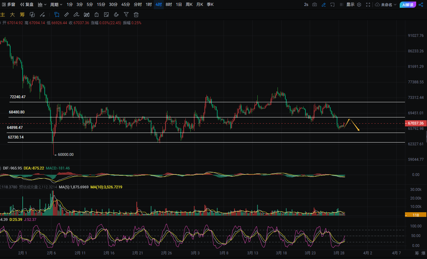 2、65000-65700多,预留63000附近补仓空间,止损带800点,目标67000-67700