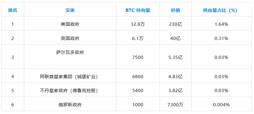 • 美国政府持有32.8万枚比特币。这些比特币来自对犯罪组织的资产查封。