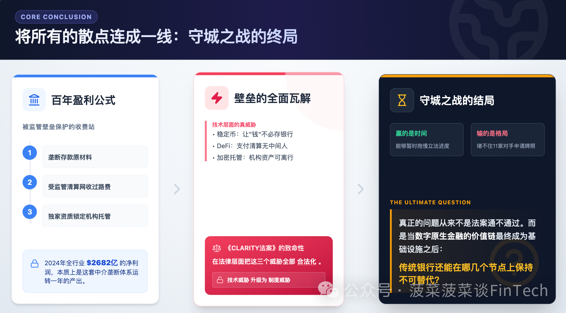 真正的问题,从来不是《CLARITY法案》通不通过,而是当数字原生金融的价值链最终成为基础设施之后,传统银行还能在哪几个节点上保持不可替代。