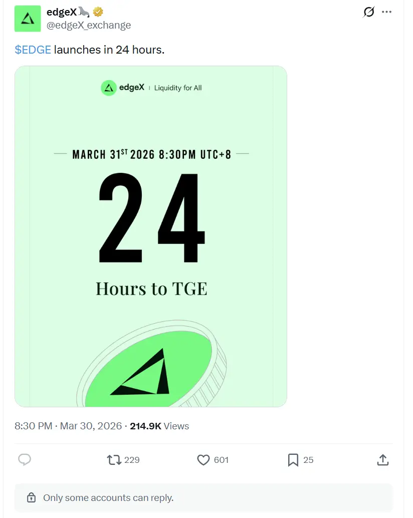随着社区质疑声四起,edgeX 直接将其 X 账号评论区关闭,试图压制负面评论的传播,但已无济于事。