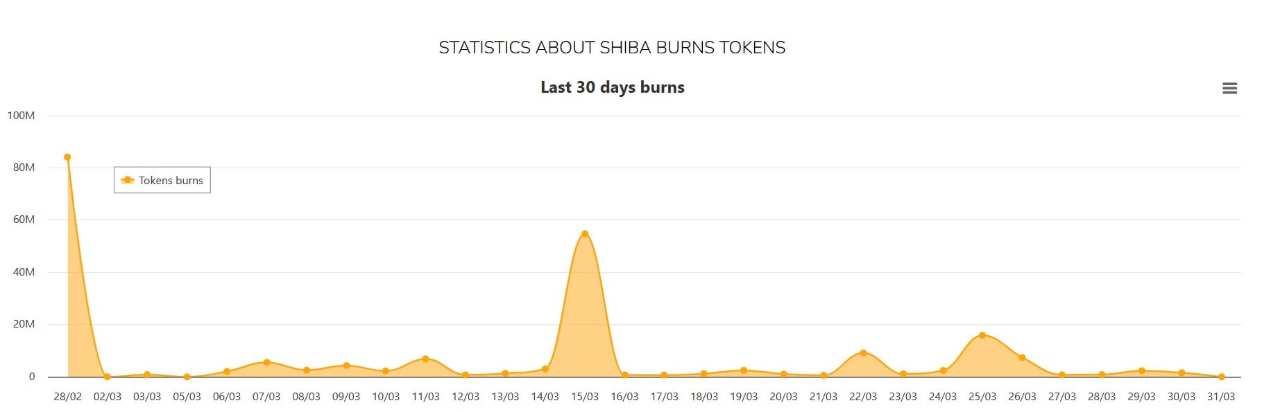 来自上述来源的数据表明,今天,即 3 月 31 日,已经触及底部,达到了最低水平。三月份的月度图表显示,本月仅出现了两个高峰,分别发生在 2 月 28 日和 3 月 15 日,分别销毁了 84,094,174 SHIB 和 54,693,900 SHIB。