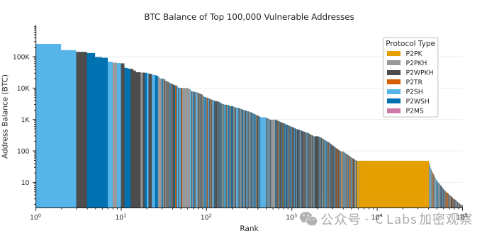目前,全网约690万枚比特币处于高风险状态。其中170万枚来自中本聪时代的早期地址——这些地址的公钥十几年前就暴露在链上了,估计黑客早就存好了,就等着未来进行量子攻击。