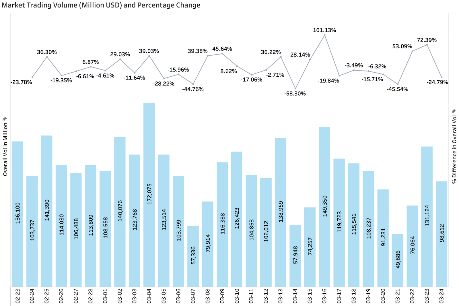 • 3月交易量呈“脉冲式放量+快速回落”,多次出现极端涨跌但缺乏持续性,显示资金以短线驱动为主;全市场市值则温和震荡,中旬见顶后回落至2.45万亿–2.50万亿美元区间,整体动能不足。