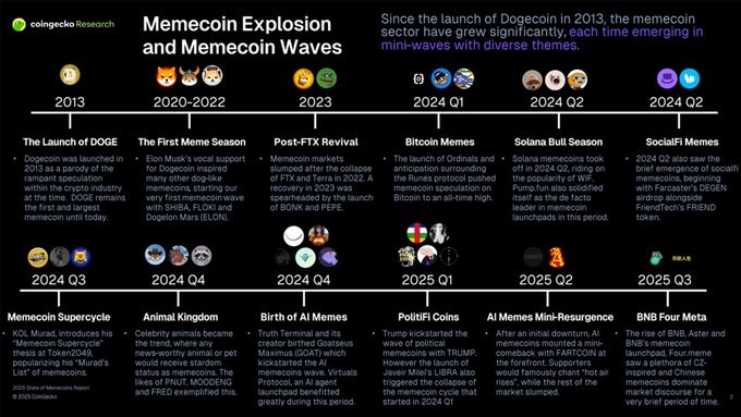 再说 Meme。2025 年的崩盘,教科书般惨烈。KuCoin 研报点破要害:不是热度不够,而是 「没有可消费的场景」。传统的 Meme 币完全靠社区情绪和 KOL 喊单,生命周期永远逃不出 「发射 - 拉盘 - 砸盘」 的宿命。CZ @cz_binance 曾直言: