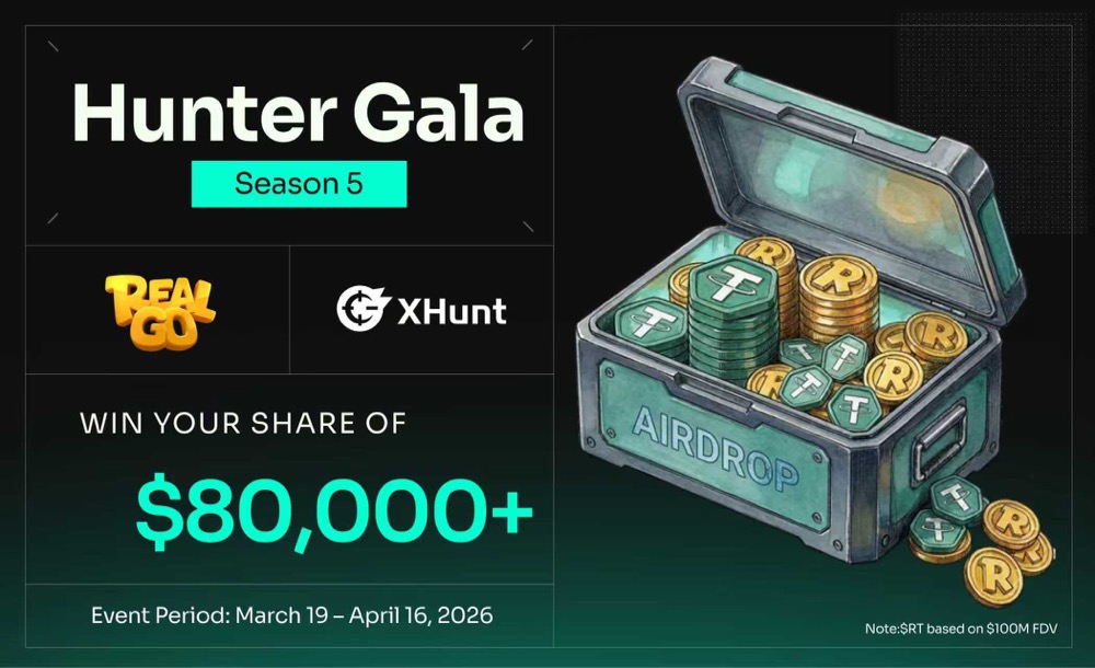 • 重磅活动: @xhunt_ai 与 RealGo 正在联合开启 「Let's RealGo」 活动,奖池为 1 万稳定币,7 万等值 RT 代币,以及 20 只创世矿宠,是一次比较大额的生态激励。
