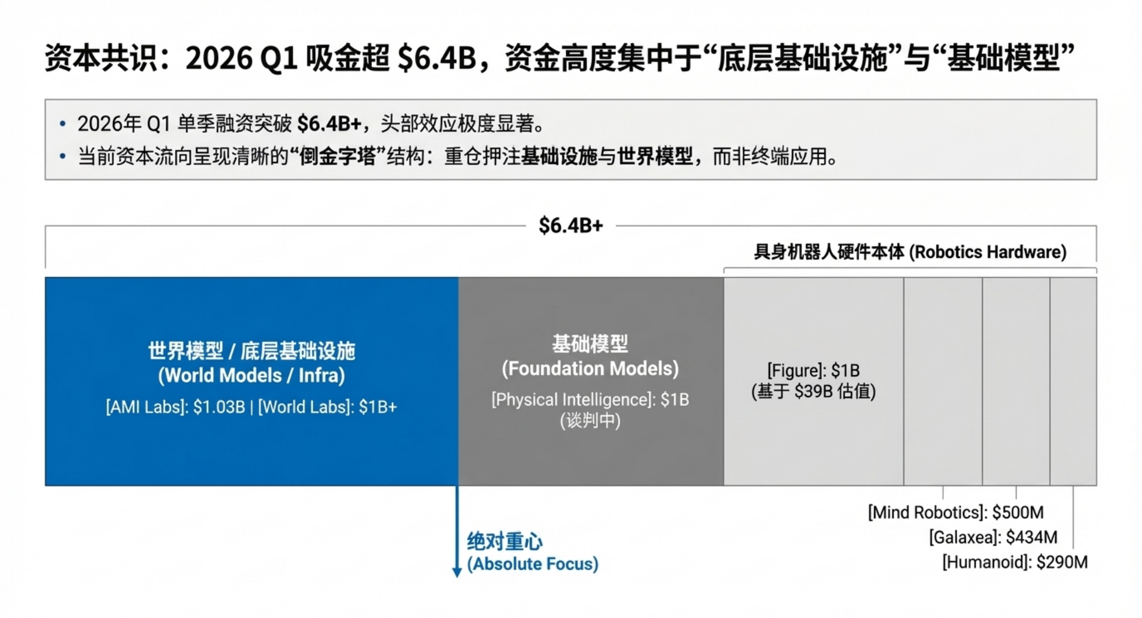 仅上述公开数据,Q1 已超过 64 亿美元。而这还不包括 Tesla、Hyundai/Boston Dynamics、Google DeepMind 等大厂的内部投入。