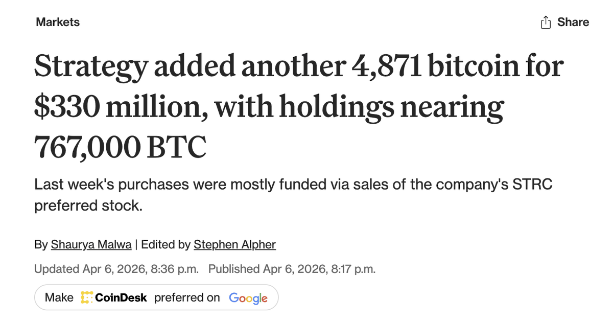 1️⃣Strategy 大手笔买入4871枚BTC;