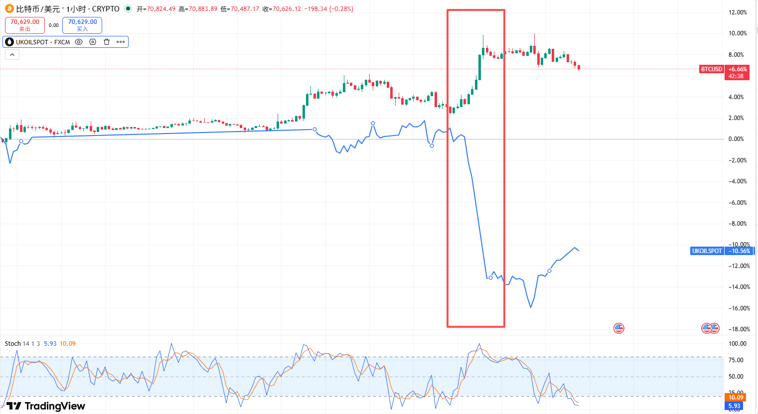 相比之下,传统原油市场因地缘溢价的迅速挤出而遭遇暴跌。这种截然相反的走势,不仅打破了传统金融学中对于「避险」与「风险」资产的刻板定义,更将比特币在全球宏观博弈中的「实时价格发现」能力推向了前台。