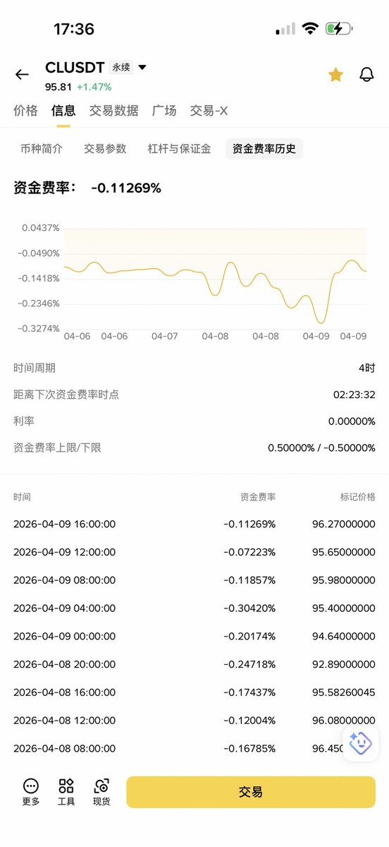 凌晨五点多的时候我看了一眼 CLUSDT 的资金费率