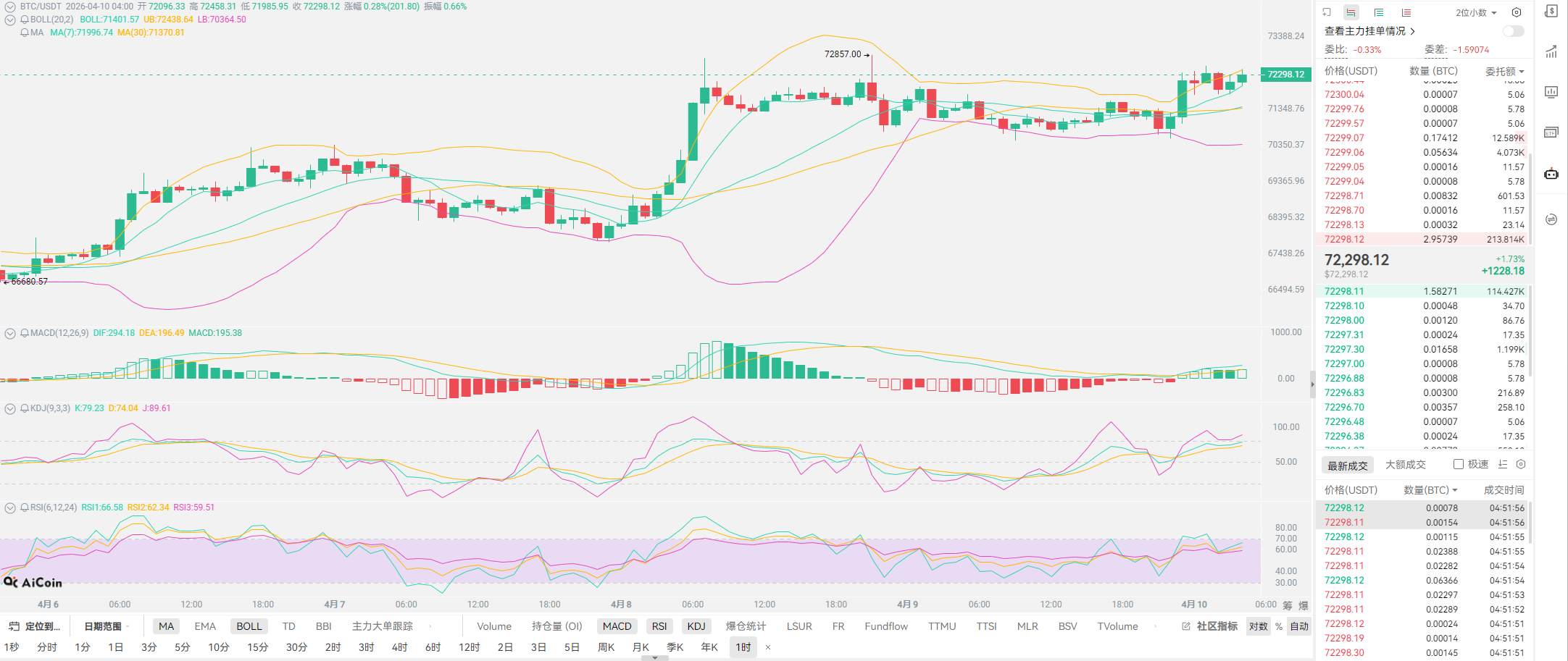 昨日多单思路,已于21点完成止盈,最高位来到72857,反馈并不好。这又回到了我们之前的老问题,会买不会卖,止盈位置都给到了大家,面对收益无法收心。老崔给出的选择都是如此,大家能接受500-1000点的收益就去做,无法接受就不要进场,不会止盈只会害了大家。同时老崔给出的单子,几乎也都是以现价为基础,最大化的收益以及不持仓过夜永远都是准则,这就是合约最基础的做法。关于现货用户,比特币的价格无需过于担心,只要是以比特币为基础的购入价格,哪怕是12W6历史级别的高位,也只是一年的持仓的标准,最终都会获利。按照现在限制字数的方式发文,老崔对于趋势层面的东西,就只能简单讲解,各位更多就看个结论即可。