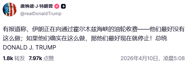 本来我以为不用再去报导伊朗和美国之间的事情了,伊朗和美国都在克制维持来之不易的停火,确实还在停火,但我是真天真了,伊朗和美国之间的矛盾并不容易调和,前一天还在表示愿意和伊朗一起维护霍尔木兹海峡管理的川普,今天直接说出了: