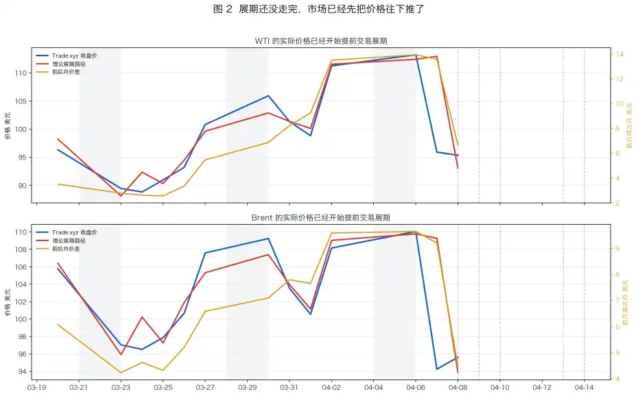 而这次 Trade.xyz 原油展期时,原油期货市场就是这种近高远低的结构。