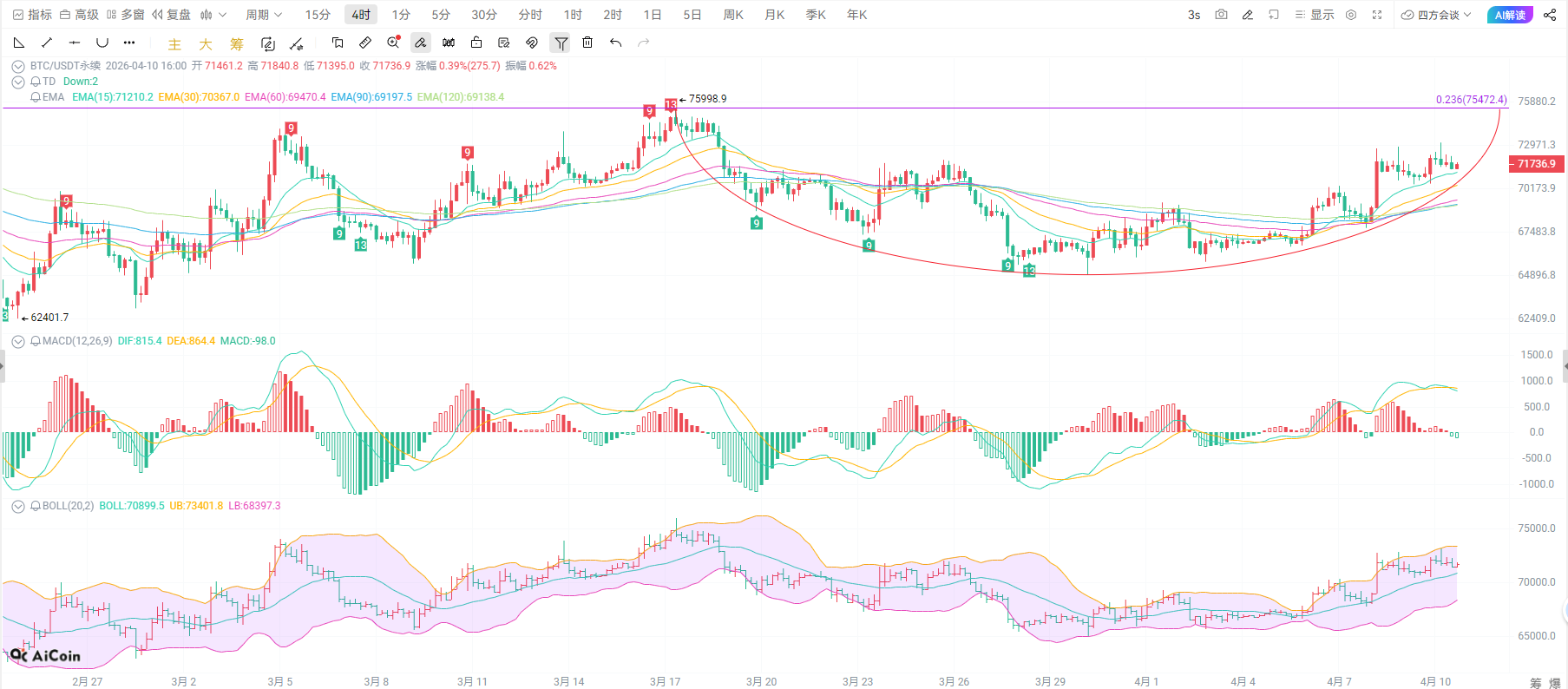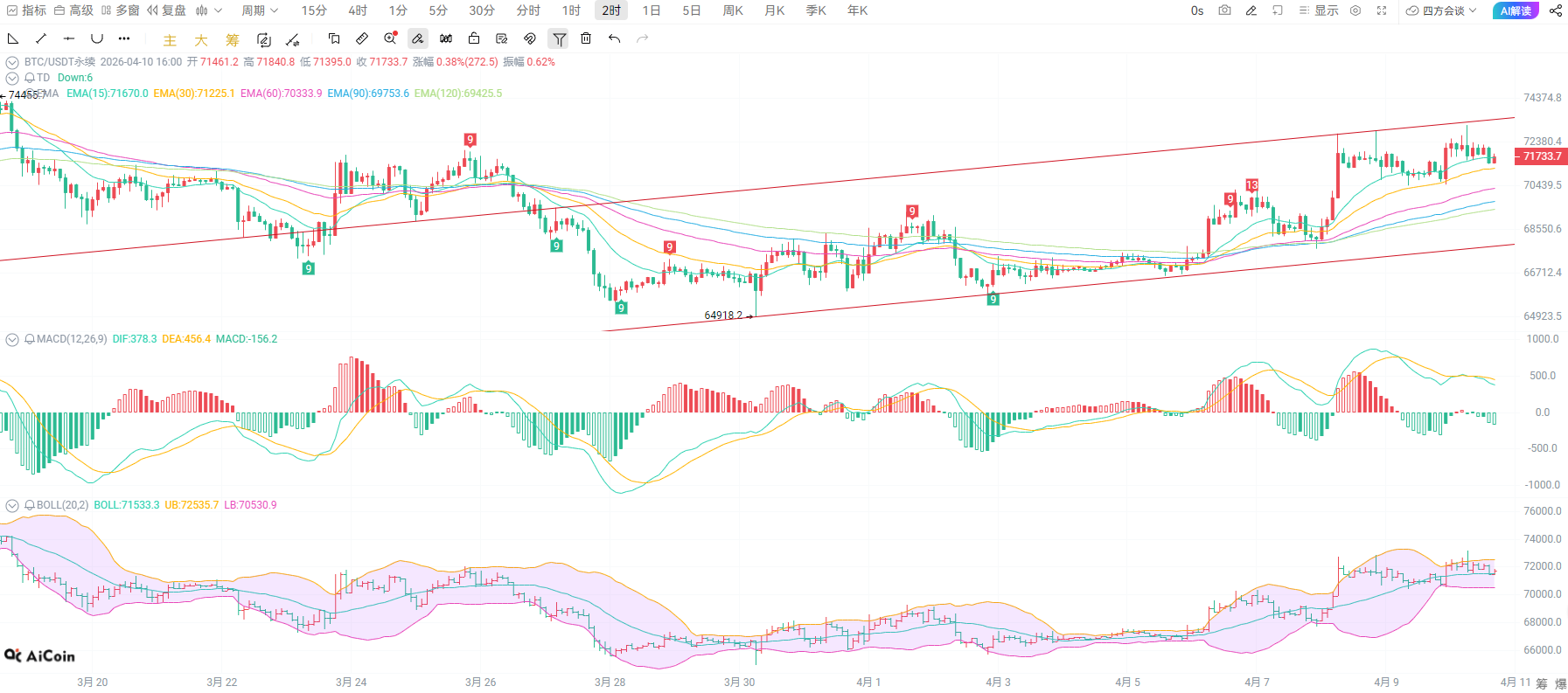 币圈院士:4.10比特币日线金叉红柱拉满,72000 反弹趋势彻底确立!最新行情分析