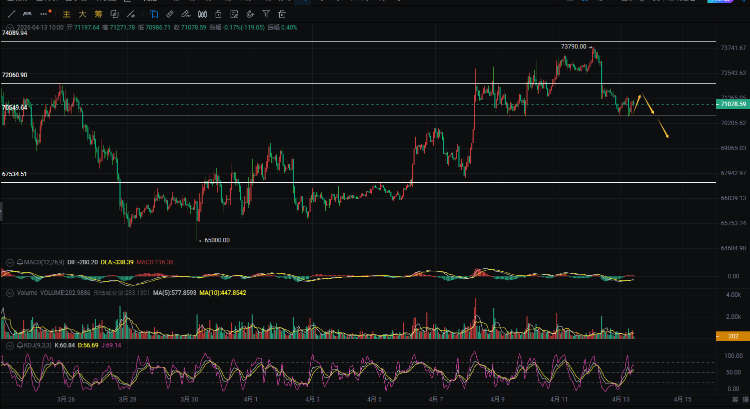 海峡封锁暴击!BTC 跌破 71000 还能抄底吗 04/13