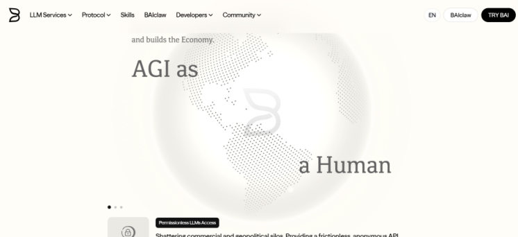 B.AI 的产品体系可以拆成三大支柱来看:一套 AI 智能体链上支付网络,一个覆盖多个顶尖大模型的调用入口,以及一个开箱即用的智能助手 BAIclaw。