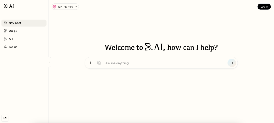 这个服务同时覆盖两种使用场景:面向普通用户的多模型 AI 对话,和面向开发者与 Agent 的完整 API 接口。聊天解决的是「人怎么用 AI」,API 解决的是「系统怎么调用智能」。B.AI 不在两者之间做取舍,而是把两条路都铺好——当你是一个想试不同模型的个人用户,直接在对话界面切换即可;当你是一个开发者或一段自动化流程,API 可以让智能被嵌入到任何后台运行的代码中。