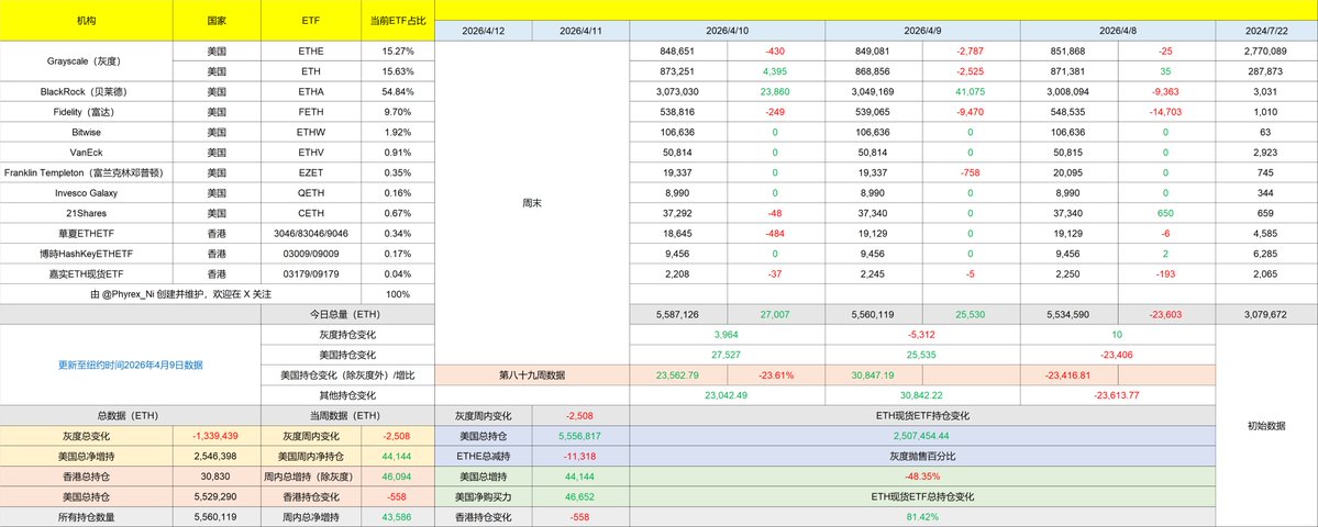 周五 $ETH 的数据也还可以,贝莱德的投资者有还不错的买入,其它的几个机构虽然买入两几乎没有,但是卖出量还是很低的,这也说明传统投资者的情绪在好转,起码没有在继续大量的卖出。