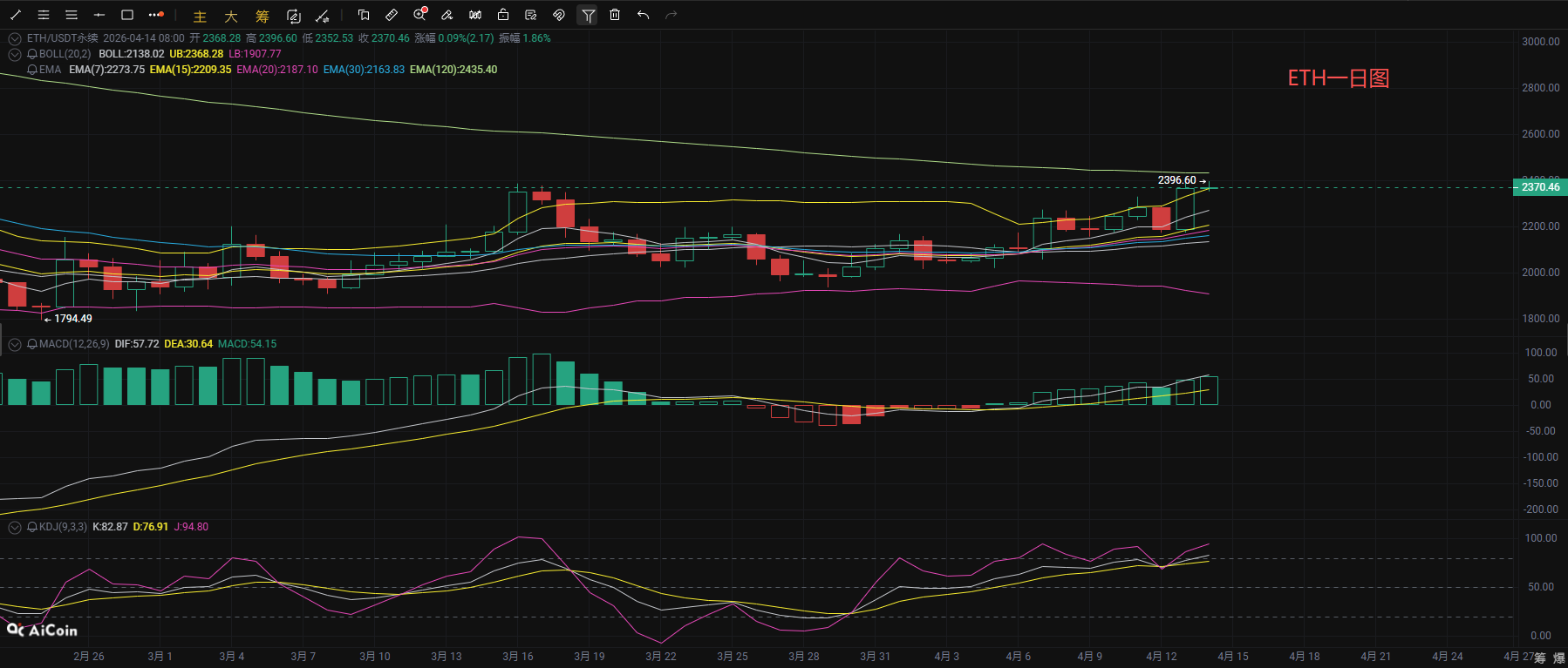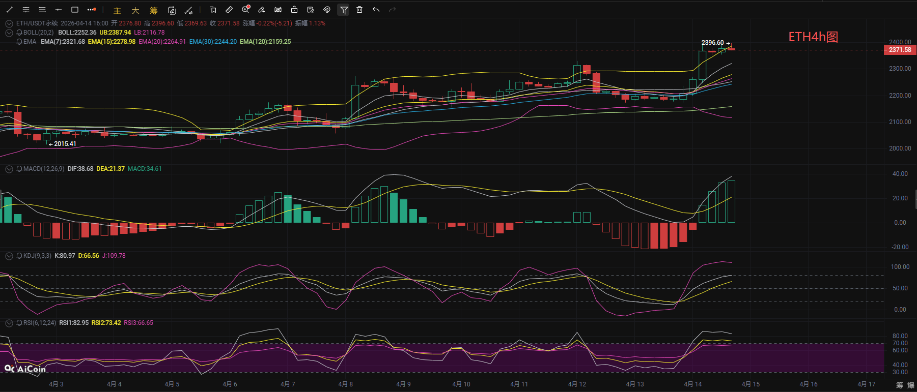 4..15张历辉:以太坊多头目标2400顺利抵达!回撤日线EMA80多头再次上攻?今日比特币(BTC)以太坊(ETH)该