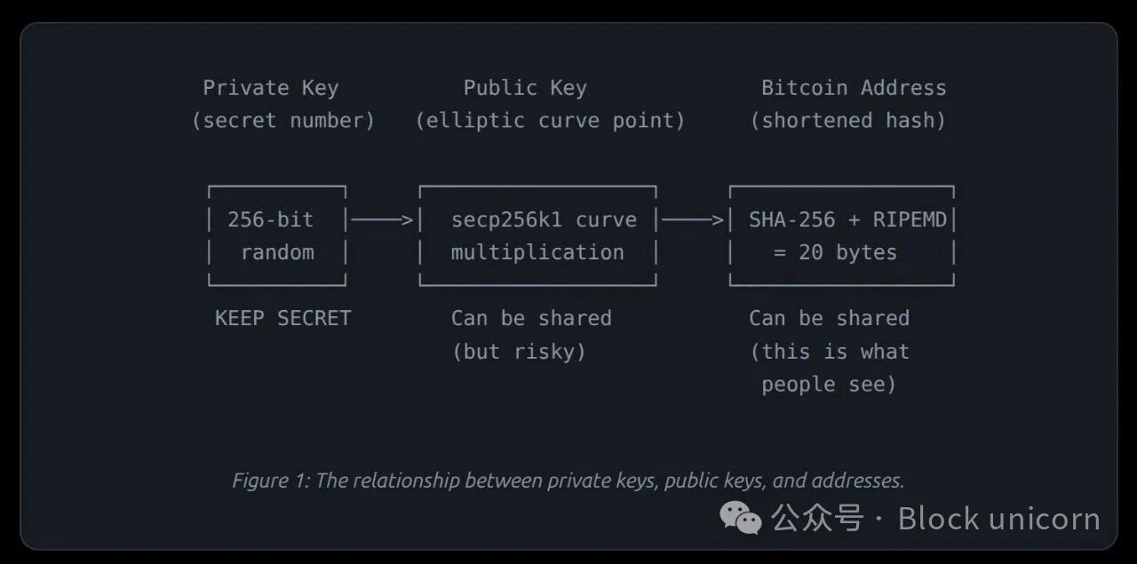 在深入探讨量子威胁之前,我意识到首先需要了解比特币的底层工作原理。比特币依靠多种数学工具来保护你的比特币余额(聪)。让我们逐一了解。