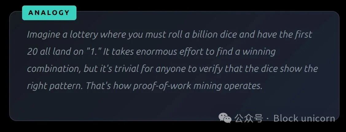 比特币矿工使用 SHA-256 算法反复对区块数据进行哈希运算,每秒尝试数万亿种不同的哈希组合,以找到一个哈希值以特定数量的零开头的组合。这就是保障网络安全的「工作量证明」。所需的零越多,难度就越大。