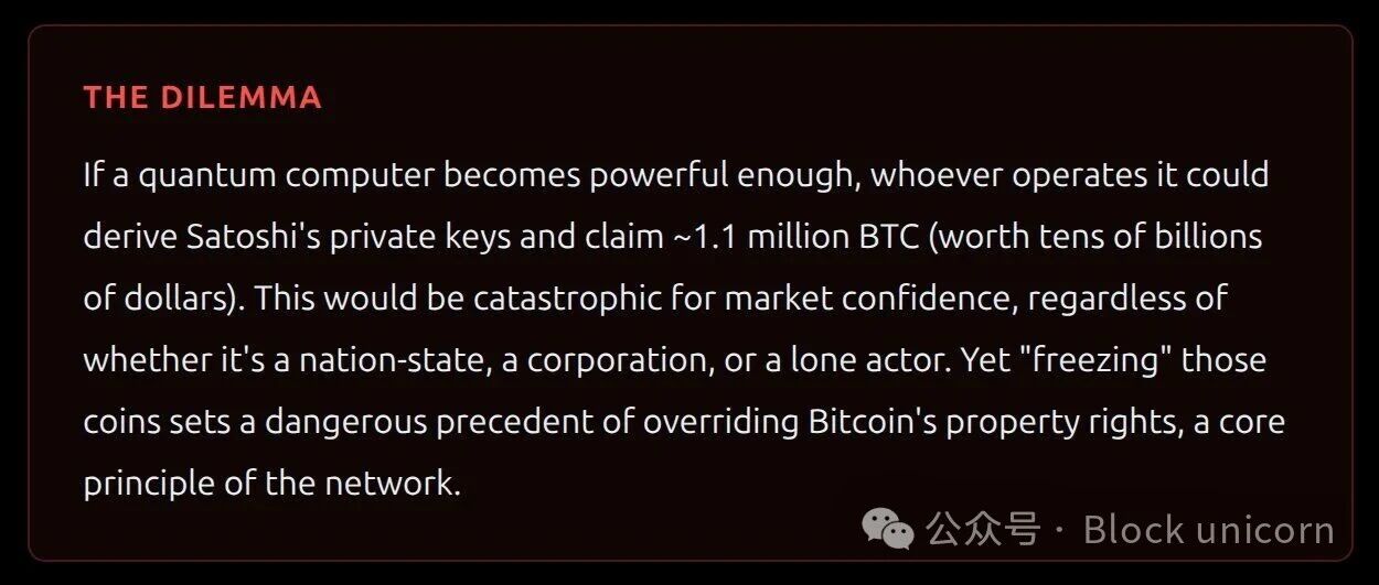 这些比特币从未被转移过。大多数人认为私钥要么是被故意遗弃,要么是丢失了。这就造成了一个无法解决的问题:任何后量子迁移方案都无法将这些比特币安全地转移出去,因为迁移需要私钥。
