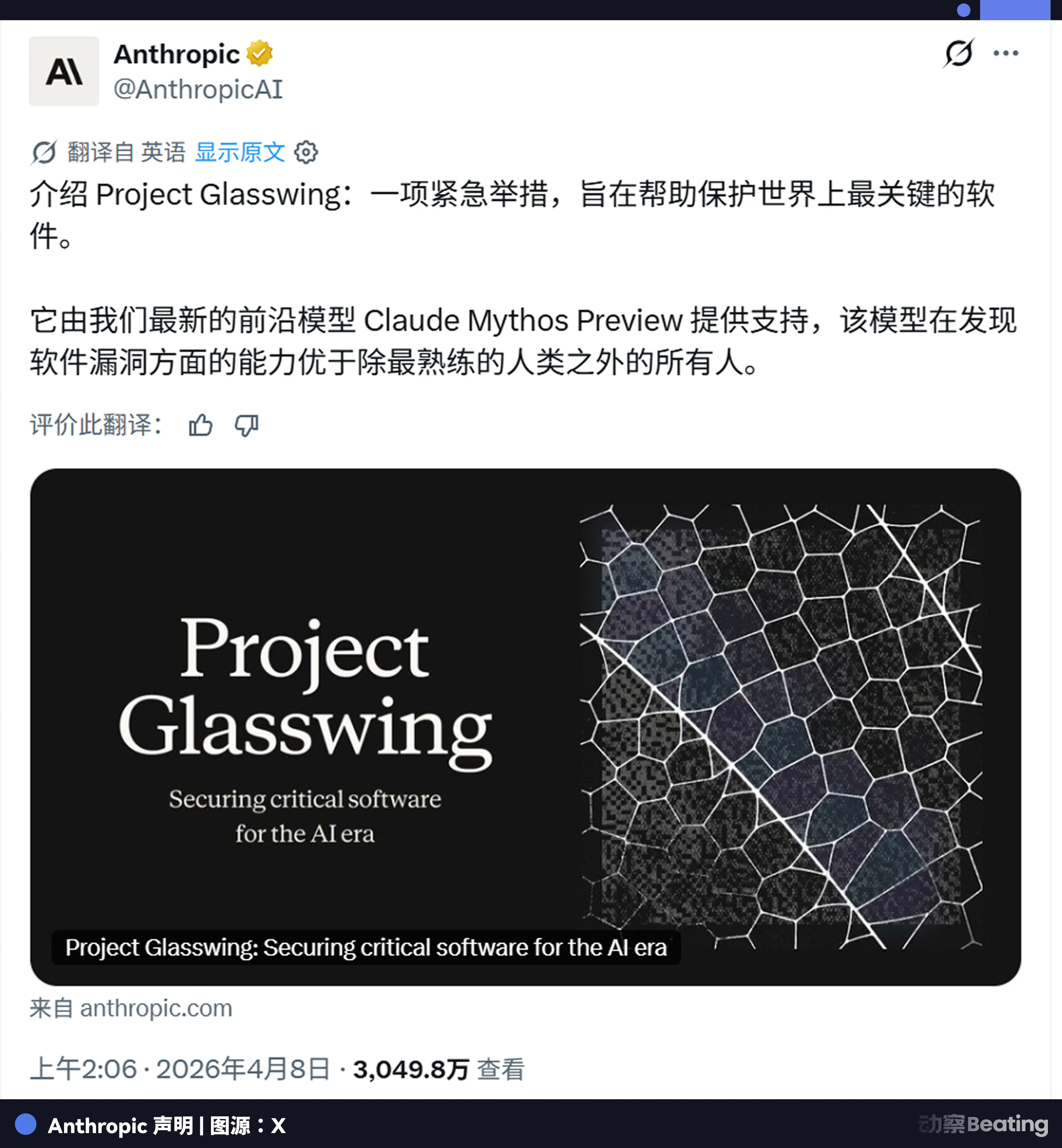 而在 Anthropic 的叙事框架里,Glasswing 是负责任的 AI 开发的终极证明。我们足够强大到发现别人发现不了的漏洞,也足够克制到不把这种能力直接丢进市场。