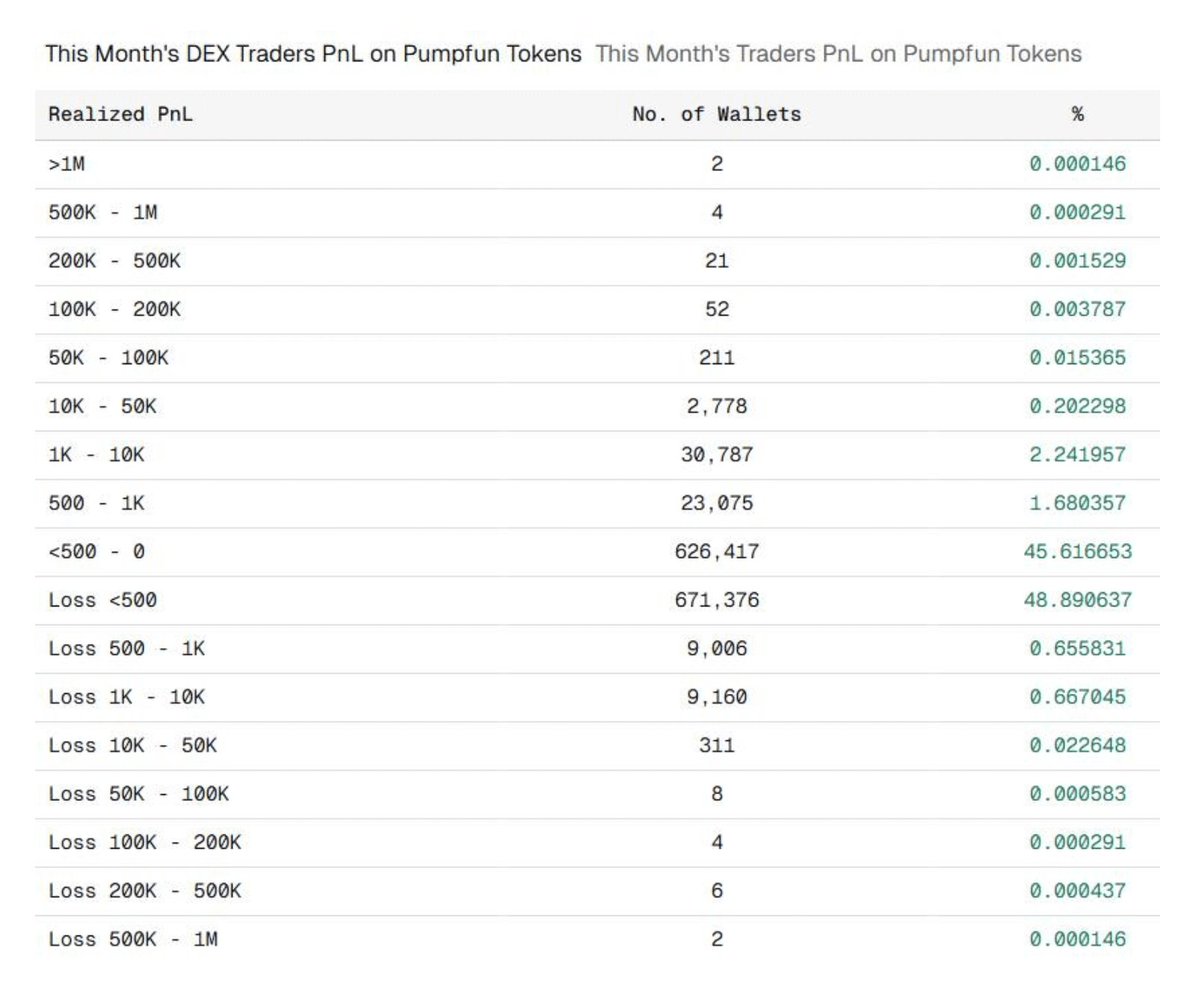 • 2026 年 3 月,在 Pump.fun 交易的 137 万个钱包中,只有约 4% 的人盈利超过 500 美元,普通用户基本都在亏钱