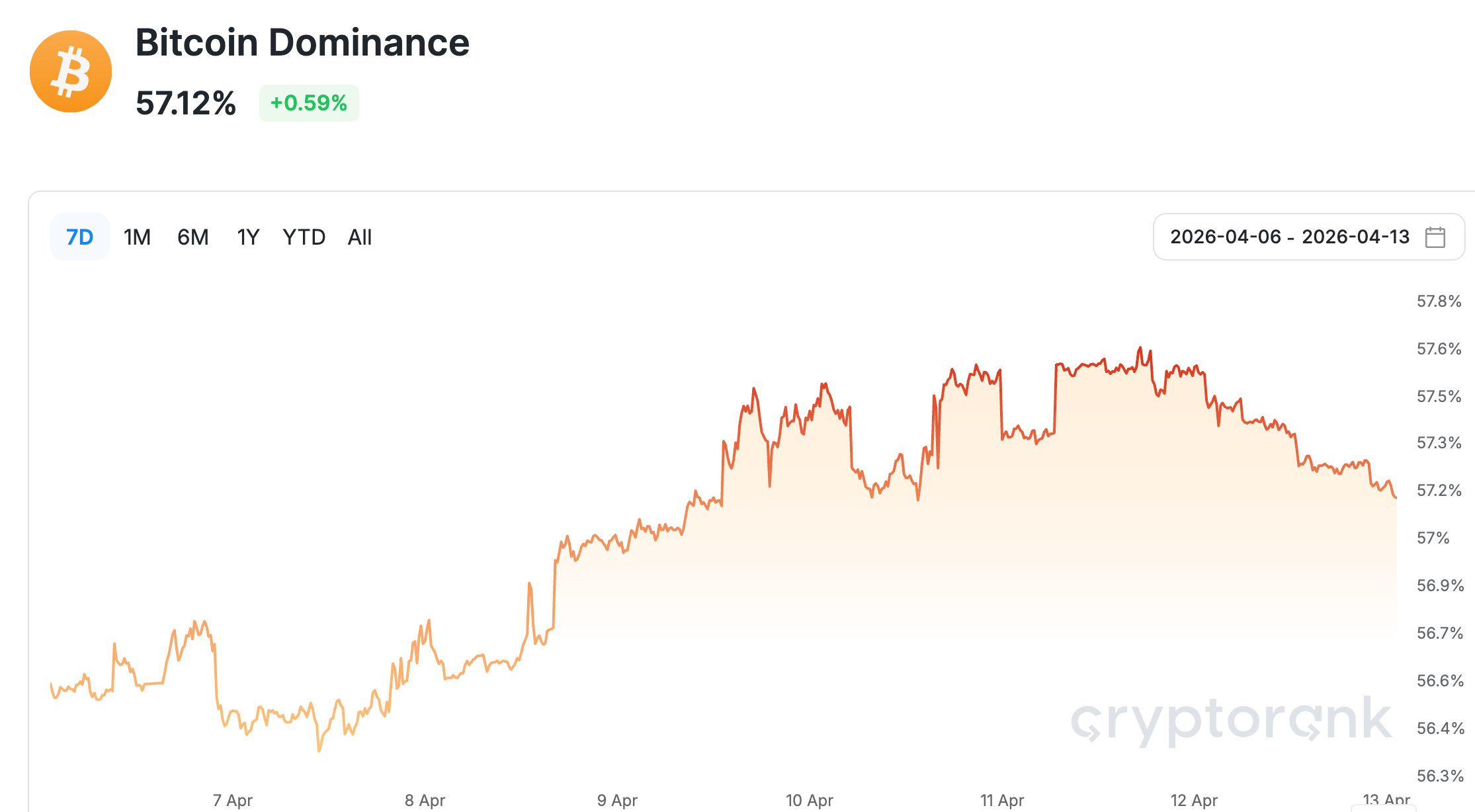 数据来源:Bitcoin dominance from cryptorank, https://cryptorank.io/charts/btc-dominance