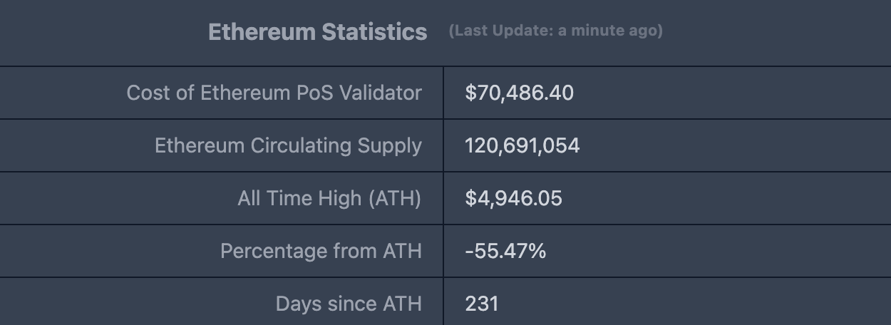 ETHUSD :现价$2,202.53,历史最高价$4,946.05,距最高价跌幅约55.48%