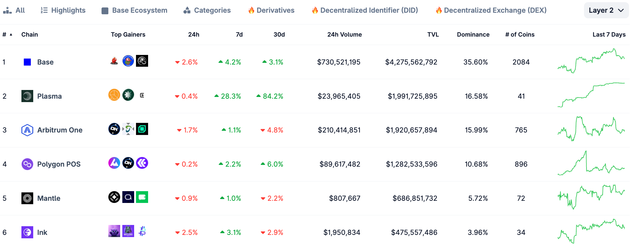 数据来源:CoinGecko, https://www.coingecko.com/en/chains/layer-2
