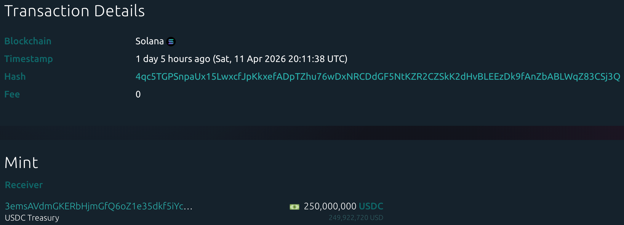 据Whale Alert数据显示,本周USDC Treasury总计增发22亿枚USDC,Tether Treasury本周总计无增发USDT。本周稳定币增发总量为22亿枚,较上周稳定币增发总量(29.48亿枚)下降25.37%。