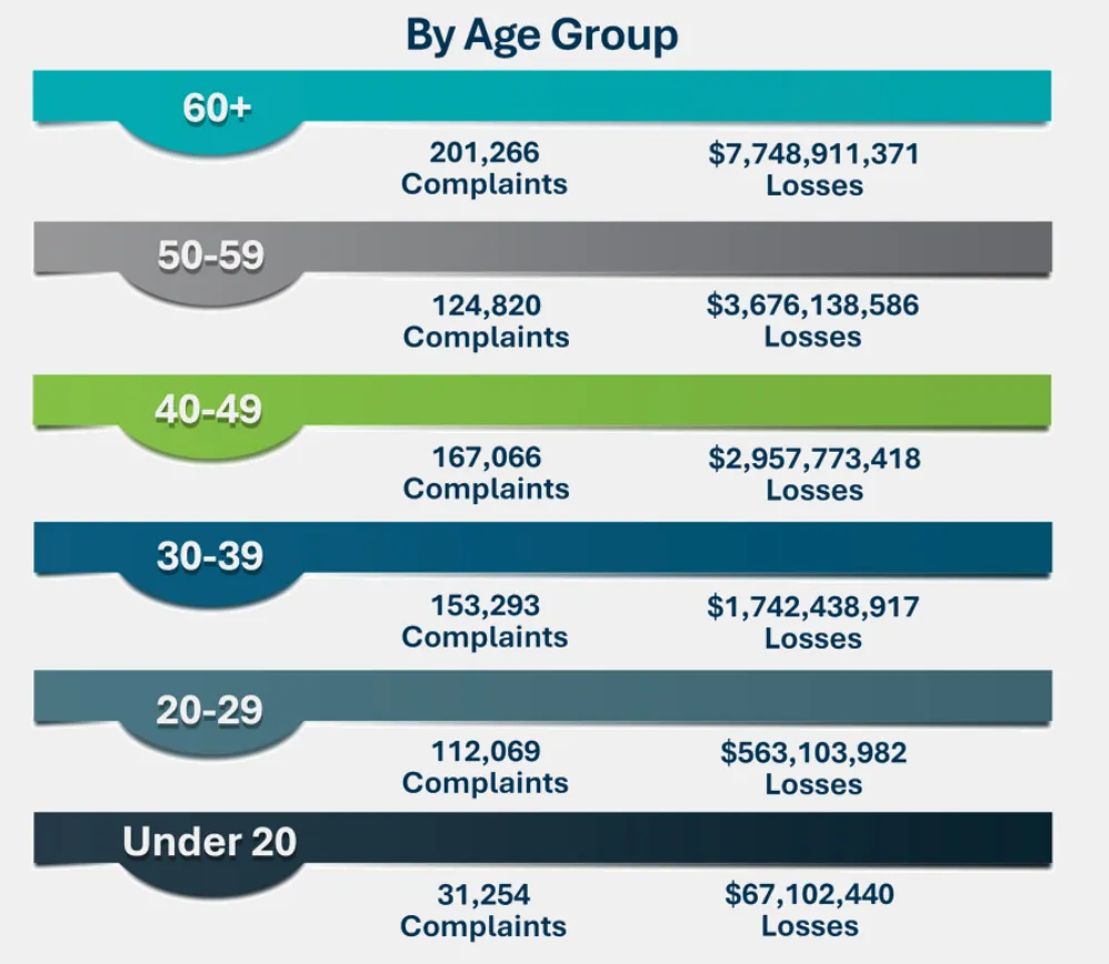 - 60 岁以上:201,266 起投诉,损失约 77.5亿美元。