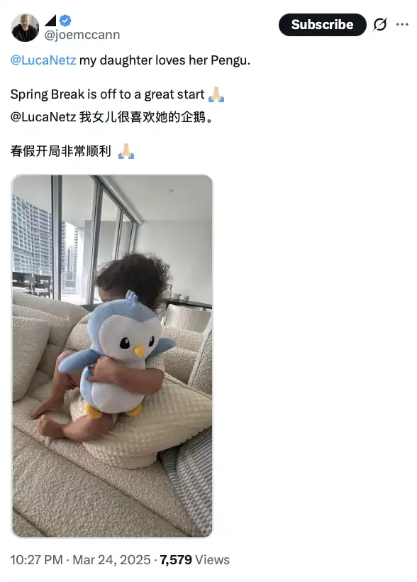 此外,根据麦肯在 X(原 Twitter)上的发文,他还有一个女儿。